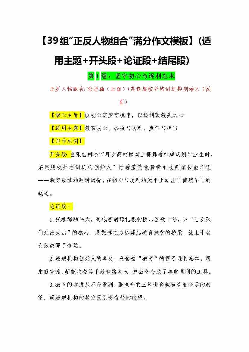 15(39组“正反人物组合”满分作文模板)(适用主题、开头段、论证段、结尾段)