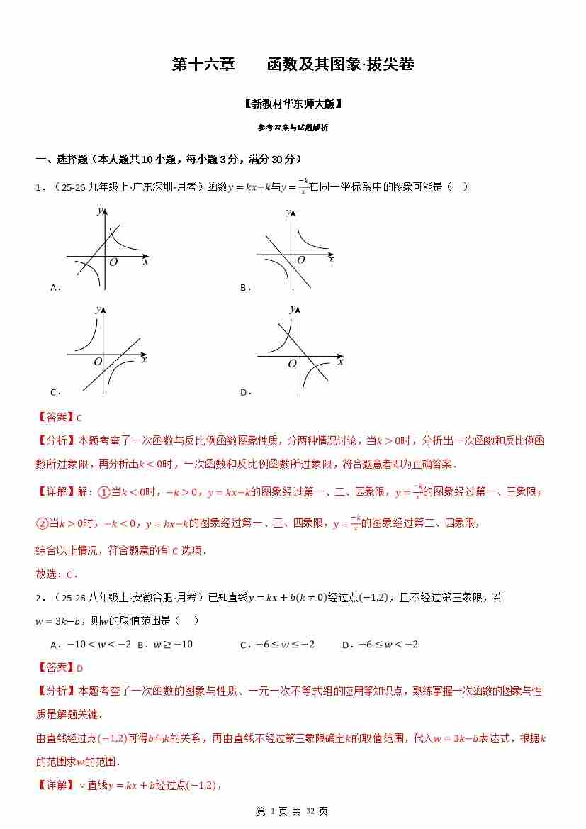 首页 > 全部 > 举一反三 > 第十六章 函数及其图象(举一反三单元自测·拔尖卷)数学新教材华东师大版八年级下册(解析版)
