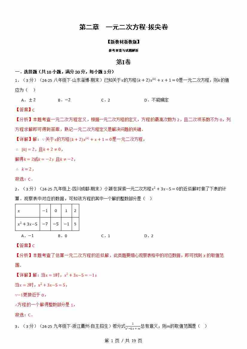 第二章 一元二次方程(举一反三单元自测·拔尖卷)数学新教材浙教版八年级下册(解析版)