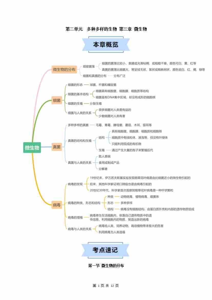 首页 > 全部 > 速记清单 > 第2单元 第3章 微生物【速记清单】七年级生物上册单元精讲·速记·巧练(解析版)