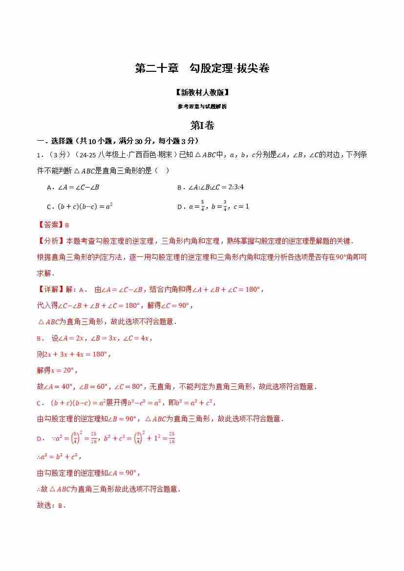 第二十章 勾股定理(举一反三单元自测·拔尖卷)(解析版)