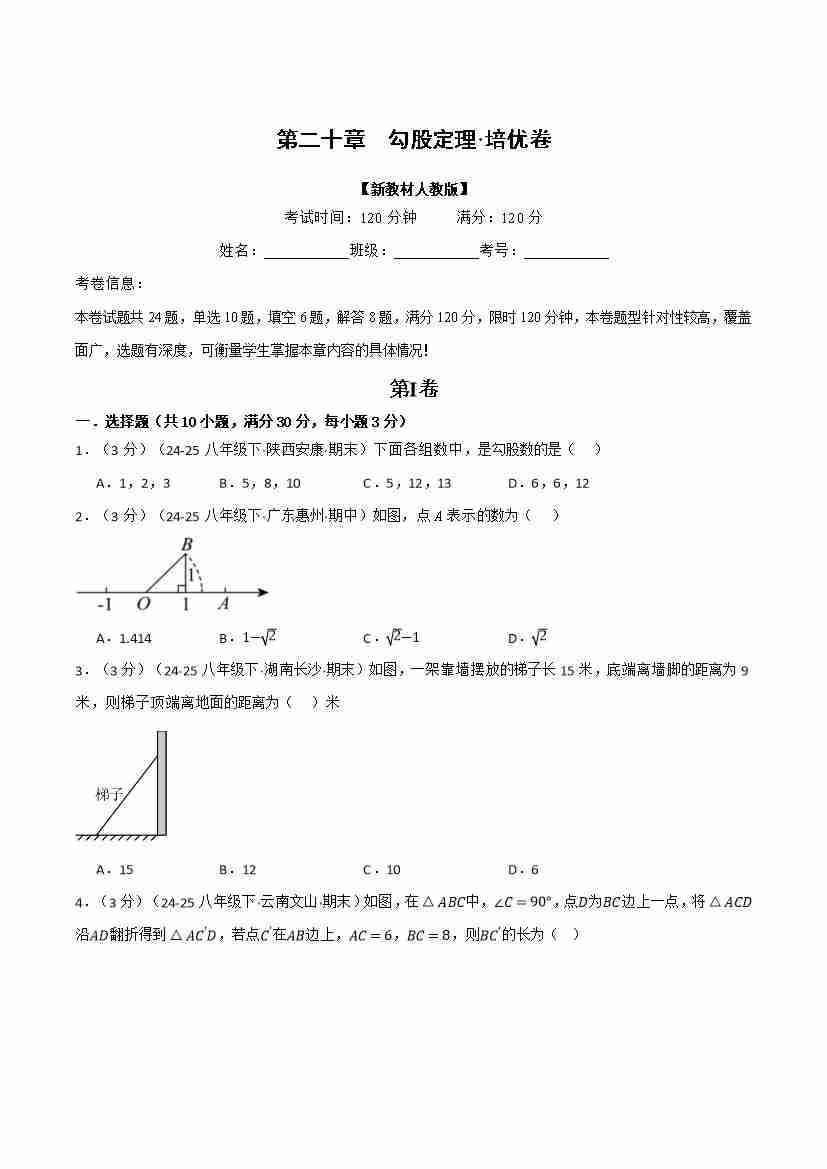 首页 > 全部 > 举一反三 > 第二十章 勾股定理(举一反三单元自测·培优卷)(试题版)