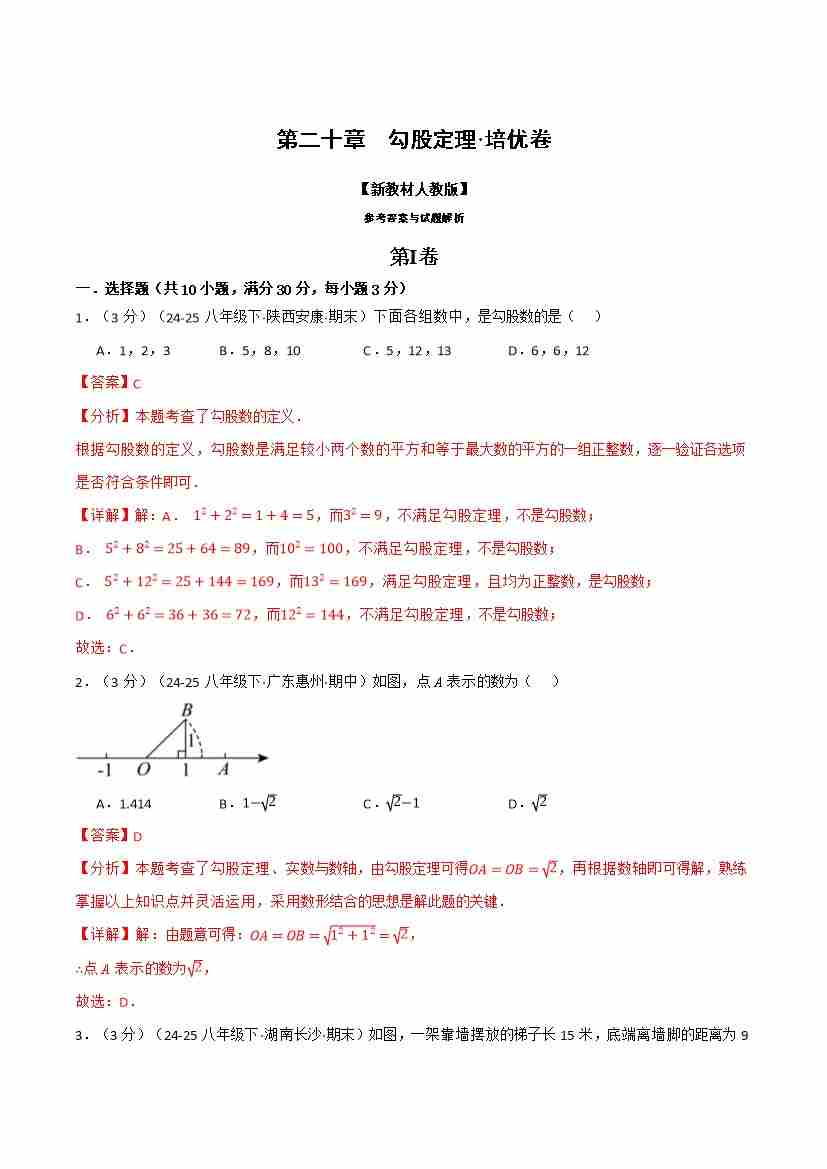 首页 > 全部 > 举一反三 > 第二十章 勾股定理(举一反三单元自测·培优卷)(解析版)