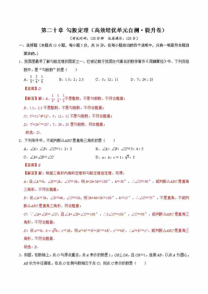 第二十章 勾股定理(高效培优单元自测·提升卷)(解析版)