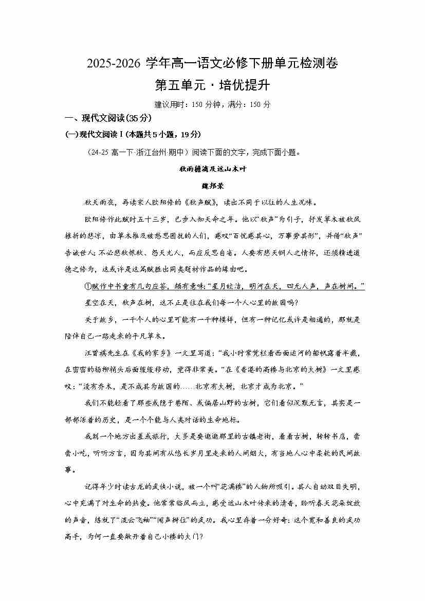 首页 > 全部 > 未知 高一语文必修下册第五单元测试·提升卷(解析版)