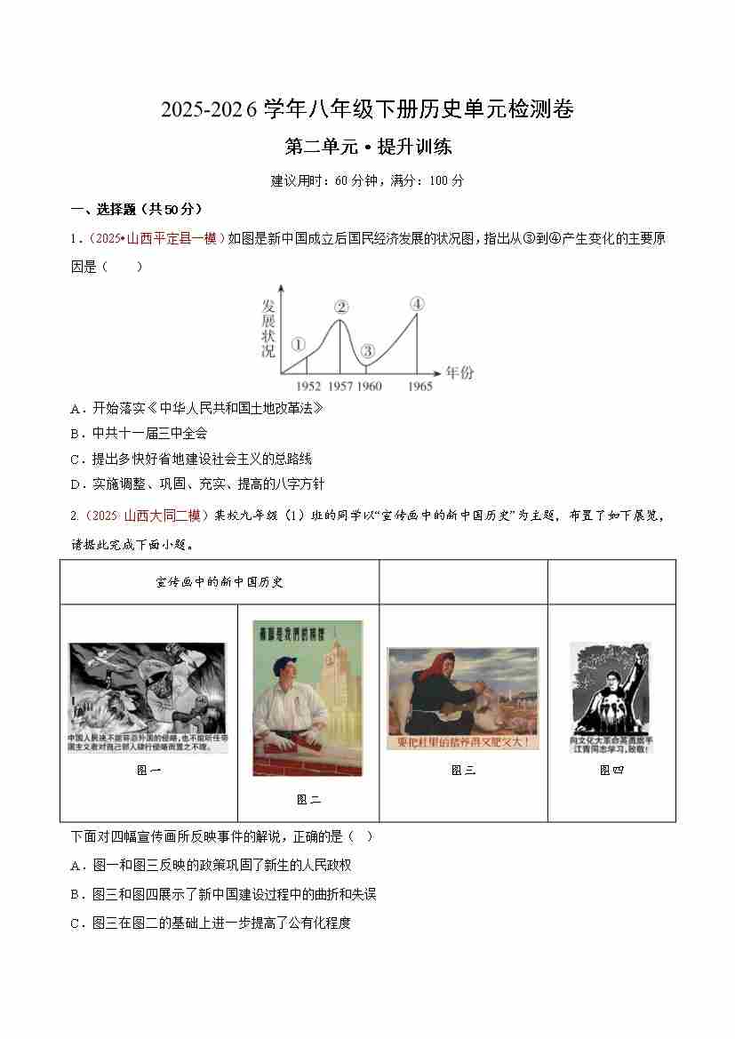 八下历史第二单元测试·提升卷(考试版A4)