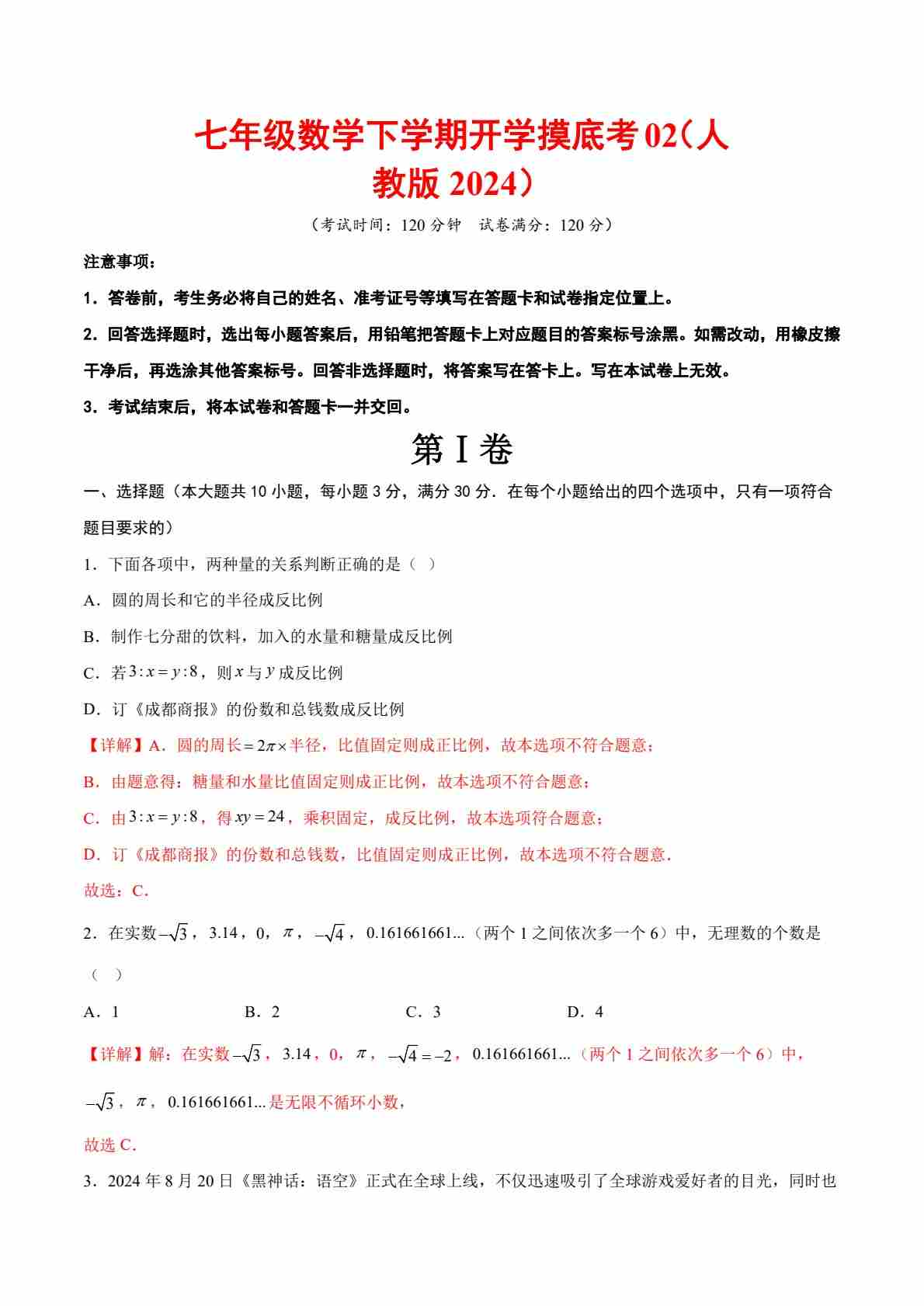 首页 > 全部 > 未知 《数学•开学摸底考》七年级解析卷02(人教)