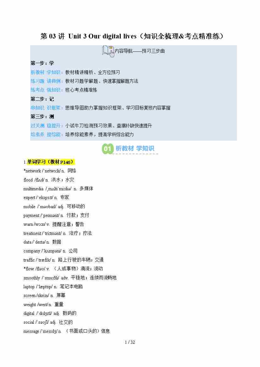首页 > 全部 > 暑假讲义 > 第2部分 预习 第03讲 Unit 3 Our digital lives(知识全梳理&考点精准练)(教师版)-2025年新八年级英语暑假衔接(沪教版)八上英语--沪教-暑假讲义