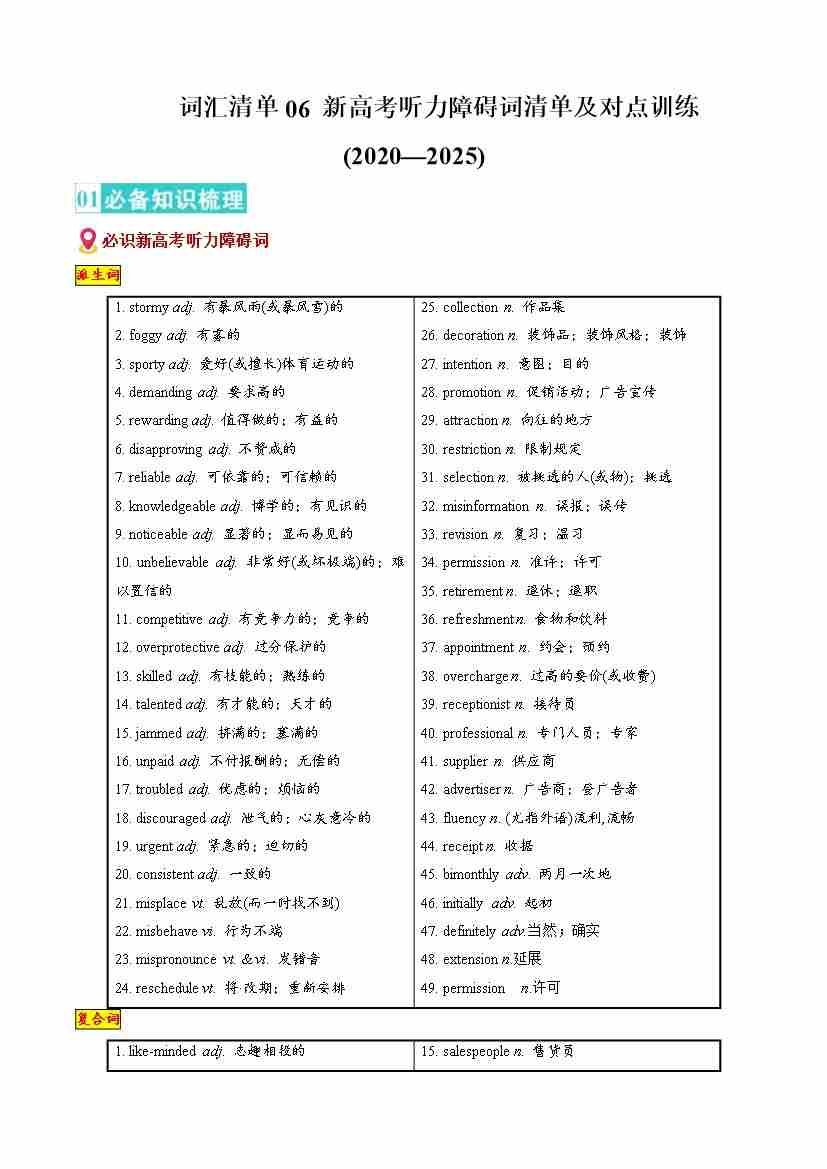 词汇清单06 高考听力障碍词汇总清单(必备知识·对点训练)(教师版)