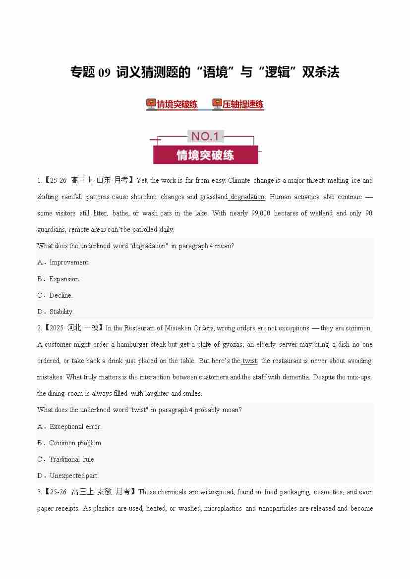 专题09 词义猜测题的“语境”与“逻辑”双杀法(培优专练)(全国通用)(学生版)
