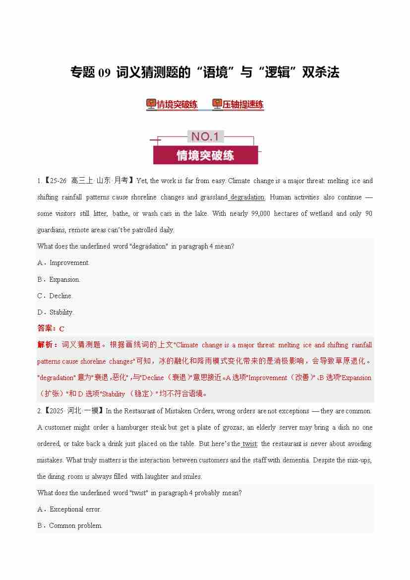 专题09 词义猜测题的“语境”与“逻辑”双杀法(培优专练)(全国通用)(教师版)