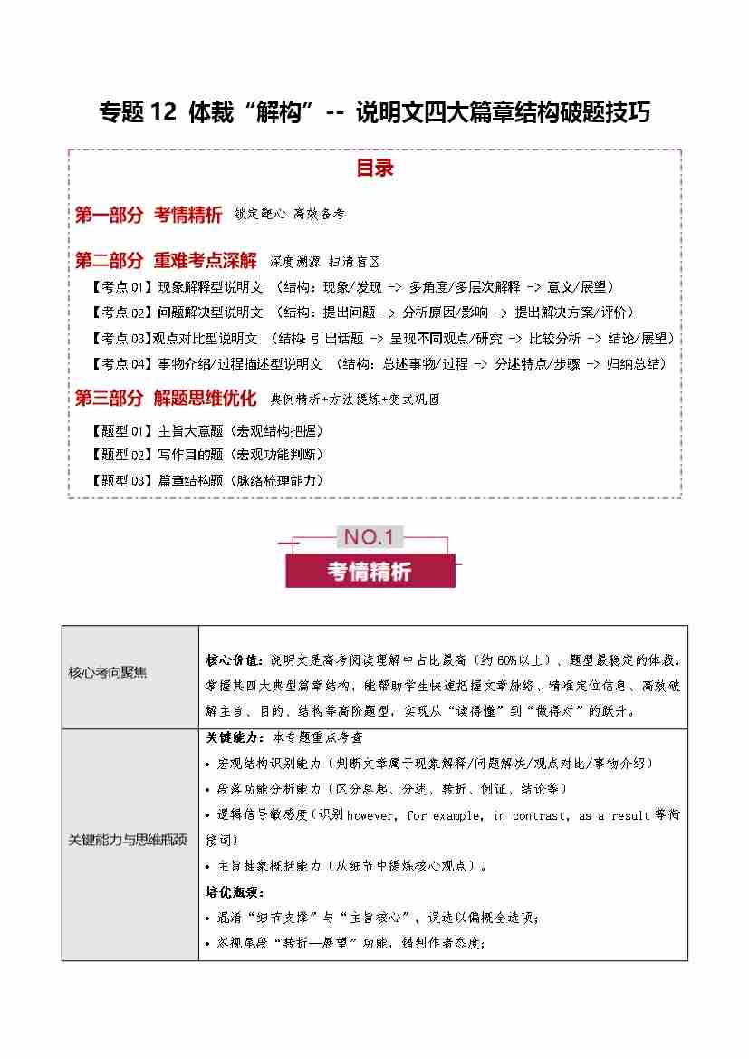 首页 > 全部 > 未知 专题12 体裁“解构” ——说明文四大篇章结构破题技巧(培优讲义)(全国通用)(教师版)