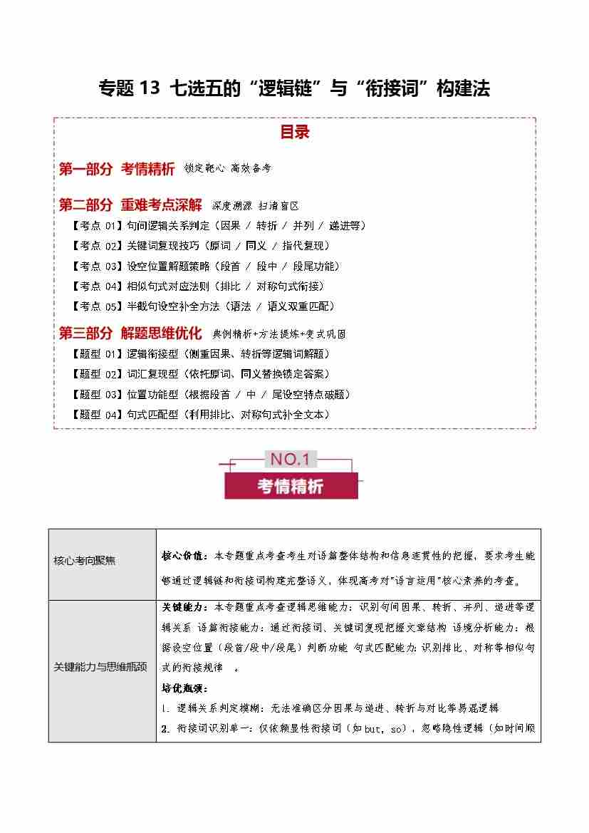 首页 > 全部 > 未知 专题13 七选五的“逻辑链”与“衔接词”构建法 (培优讲义)(全国通用)(教师版)