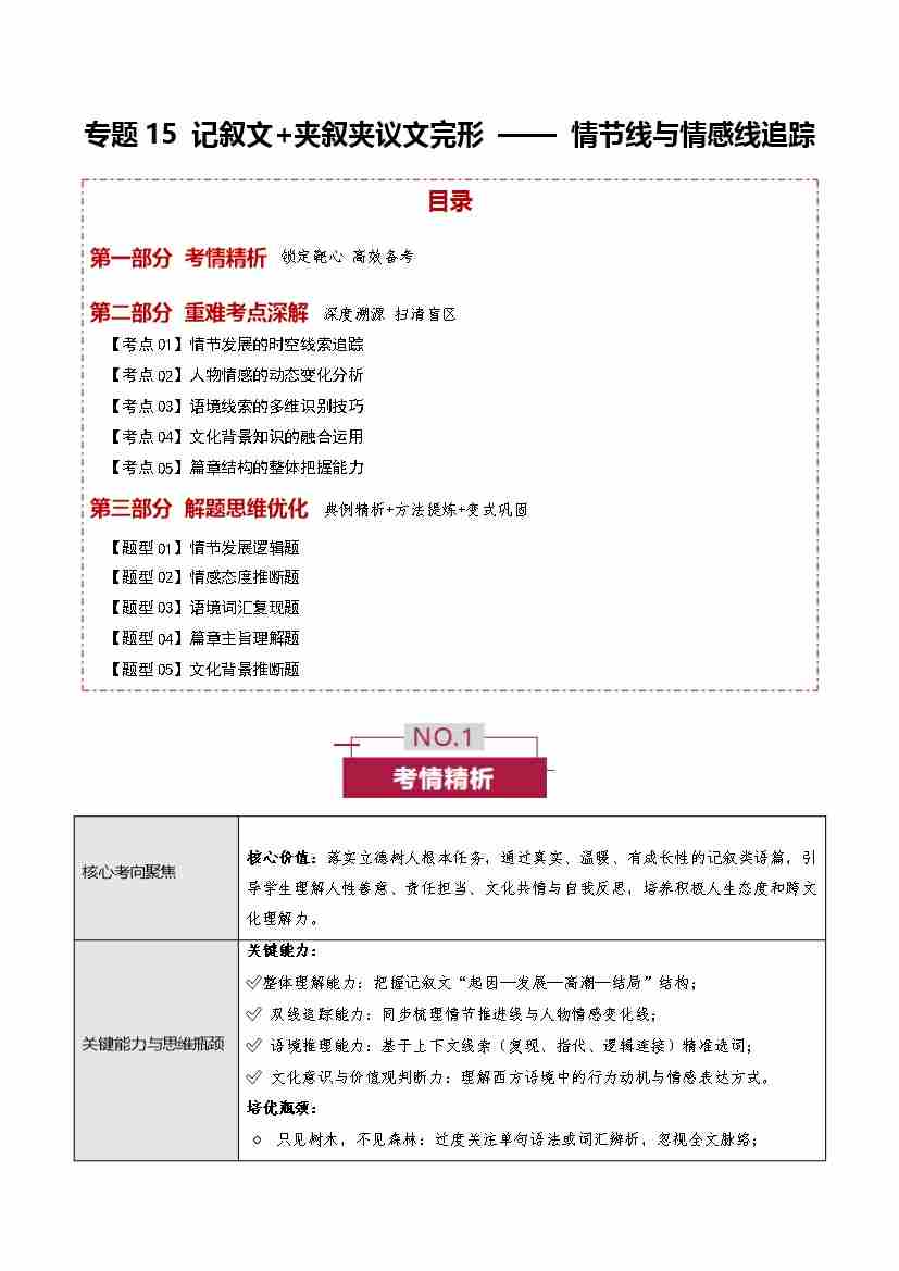 专题15 记叙文完形 —— 情节线与情感线追踪 (培优讲义)(全国通用)(教师版)