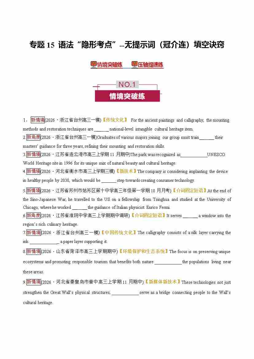 专题15 语法“隐形考点”--无提示词(冠介连)填空诀窍(培优专练)(全国通用)(学生版)