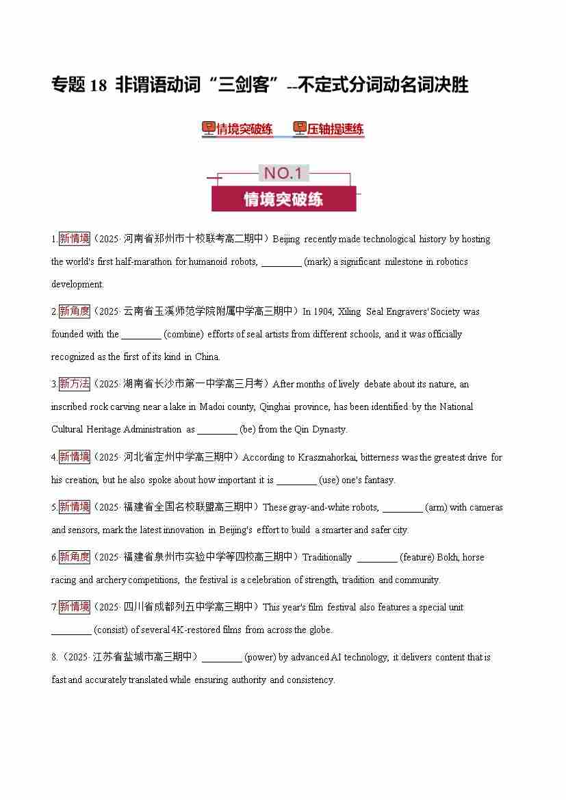 首页 > 全部 > 未知 专题18 非谓语动词“三剑客” —— 不定式分词动名词决胜(培优专练)(全国通用)(学生版)