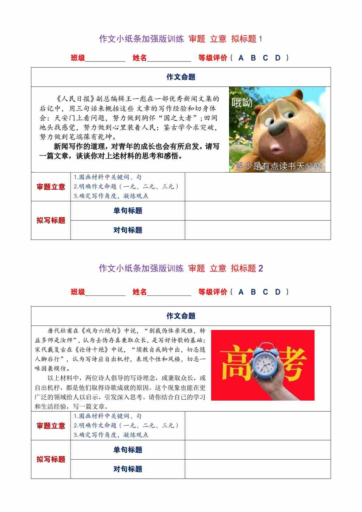 作文小纸条训练加强版——审题 立意 拟标题(20练) 训练版 PDF版