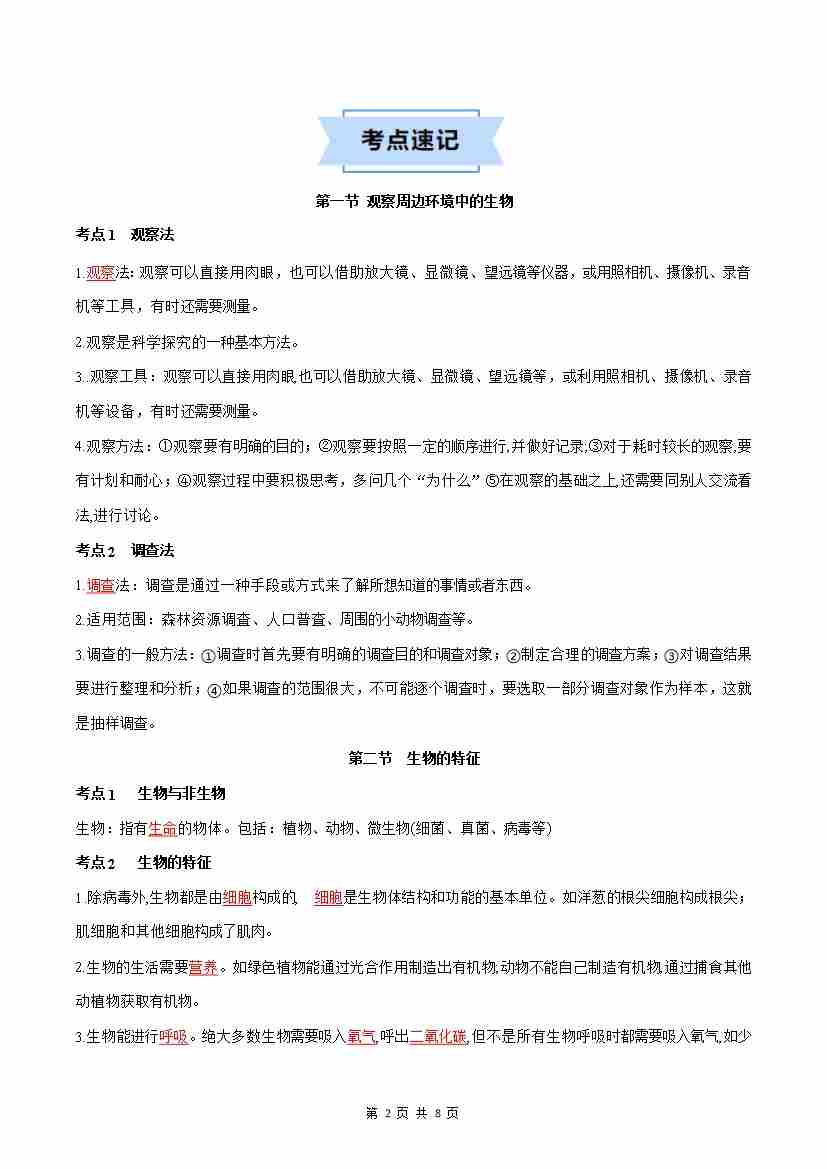 首页 > 全部 > 速记清单 > 第1单元第1章 认识生物 【速记清单】(解析版)