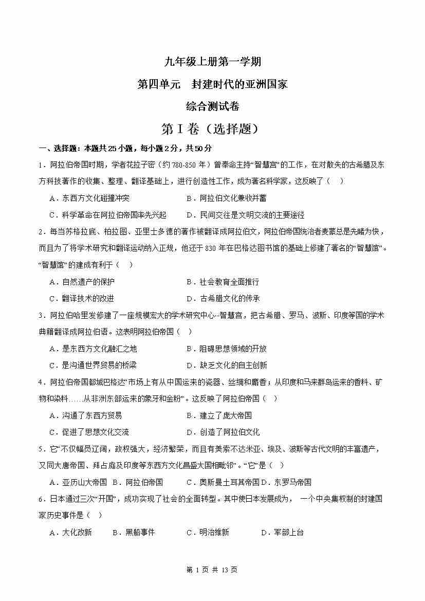 首页 > 全部 > 单元检测卷 > 第四单元 封建时代的亚洲国家【单元测试·综合检测卷】单元速记·巧练