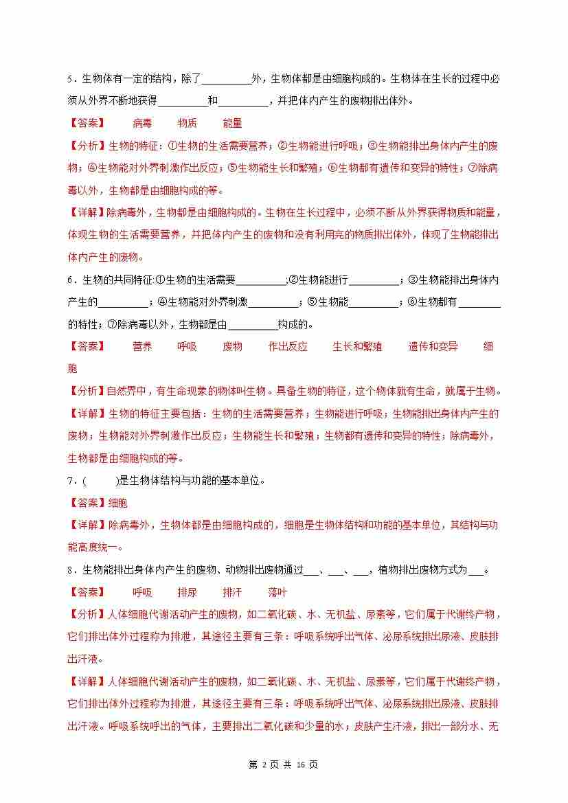 首页 > 全部 > 题型专练 > 专题01 认识生物(填空题50道)(解析版)