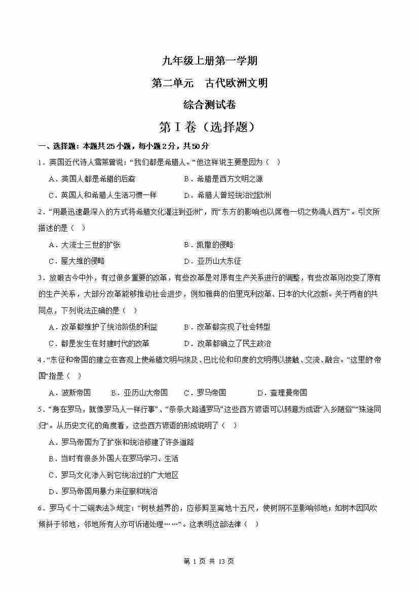 首页 > 全部 > 单元检测卷 > 第二单元 古代欧洲文明【单元测试·综合检测卷】单元速记·巧练