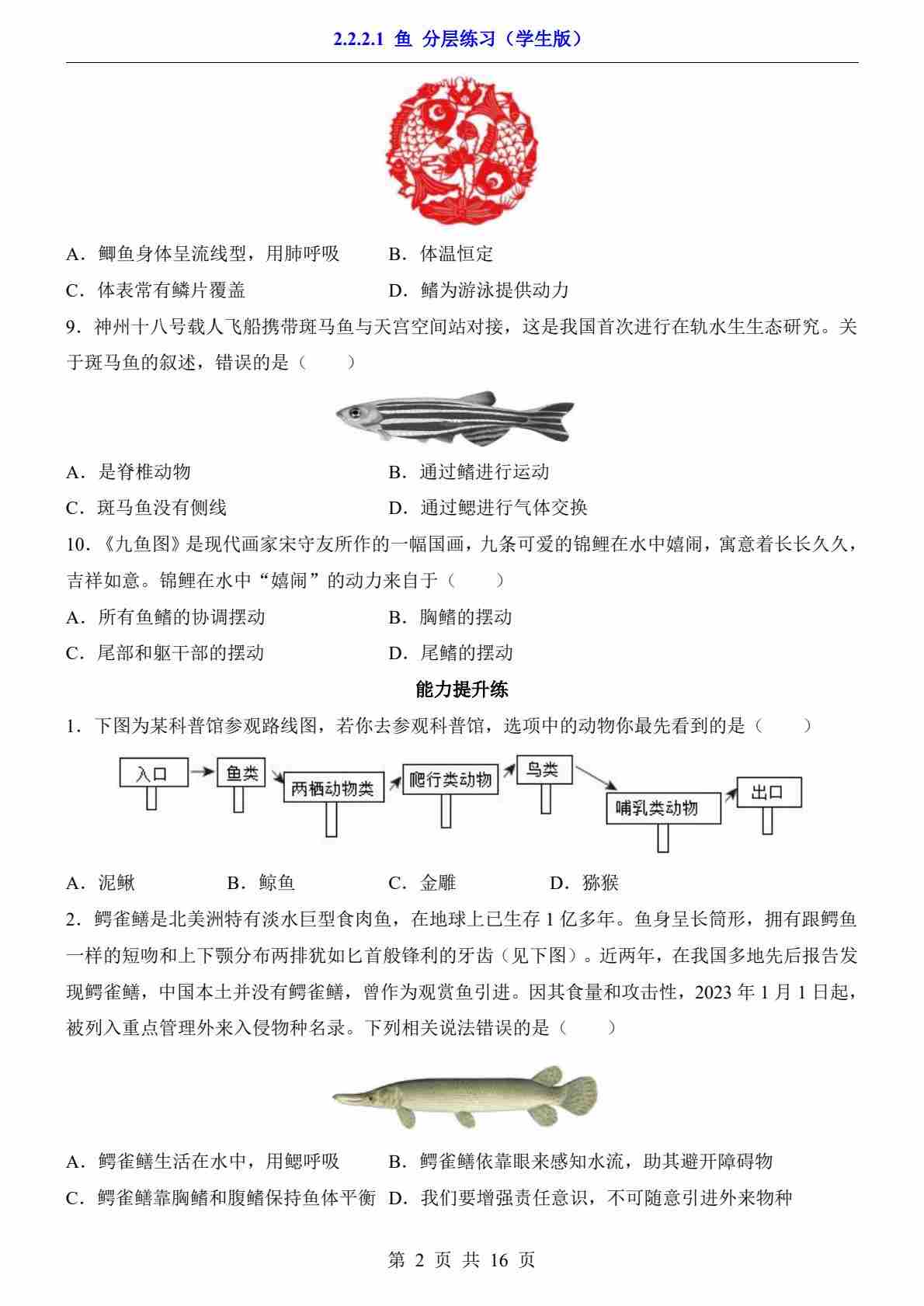 2.2.2.1 鱼(分层练习)