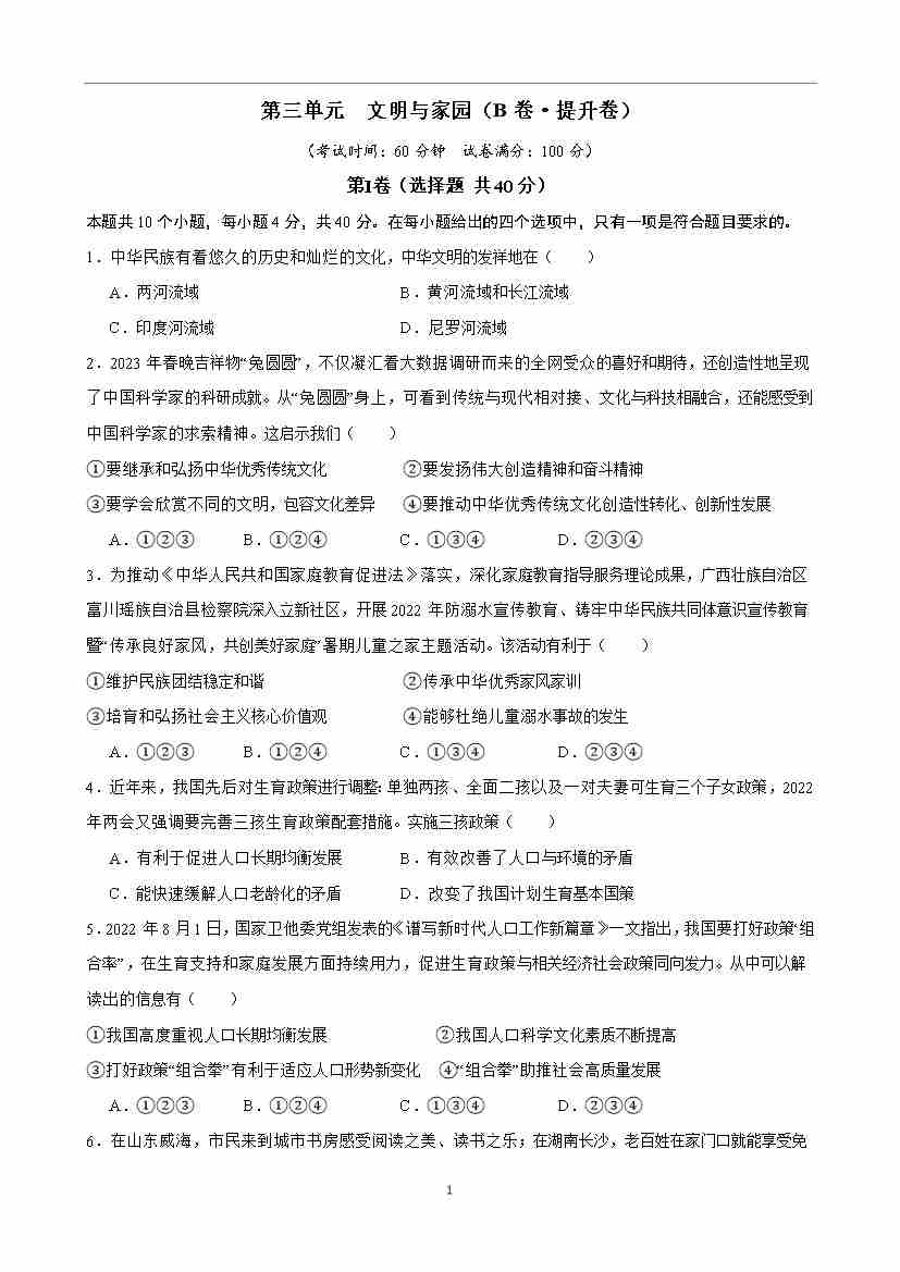 第三单元 文明与家园(B卷·提升卷)