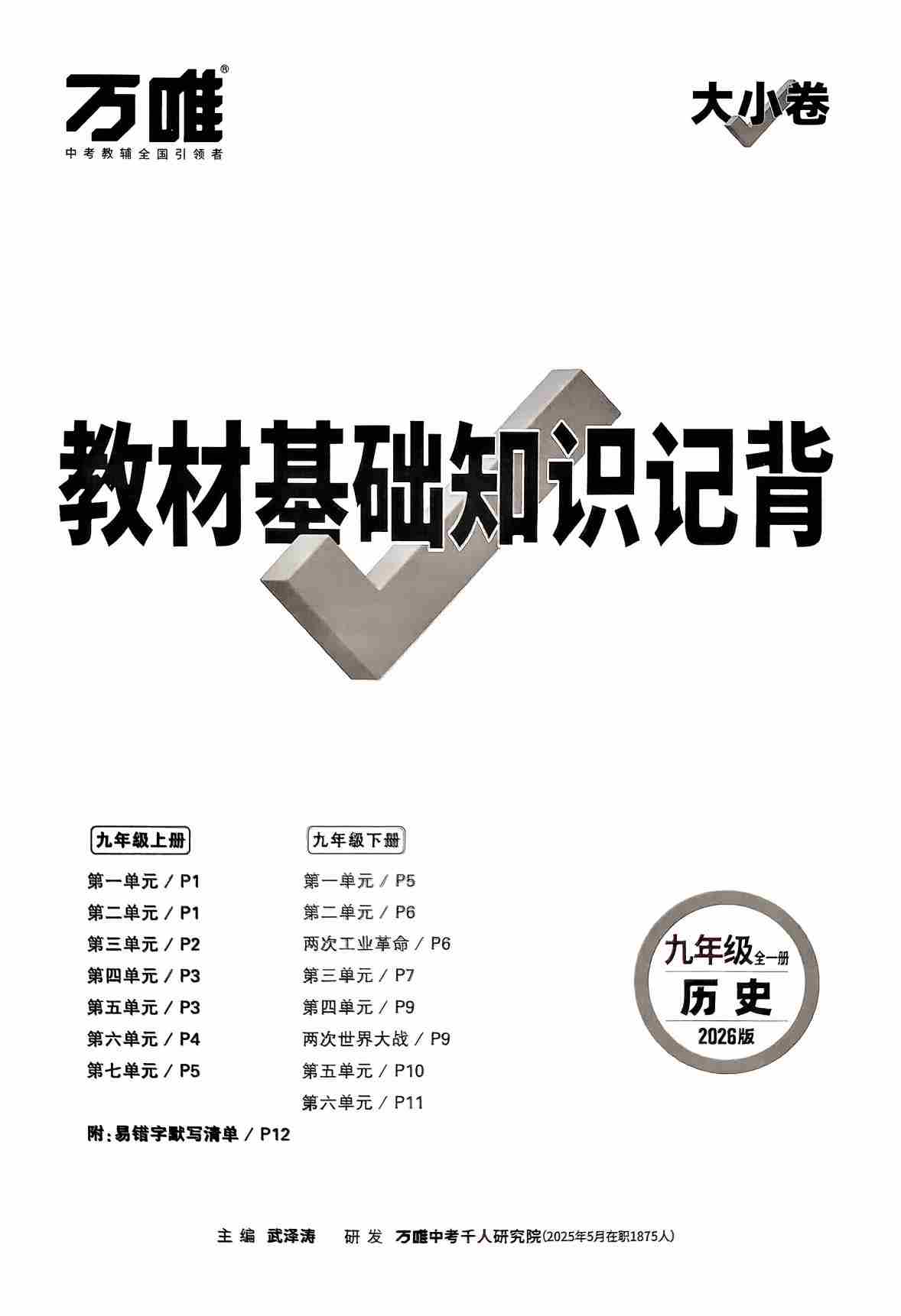 首页 > 全部 > 热门教辅 > 2026《万唯大小卷•道法》9全教材基础知识记背