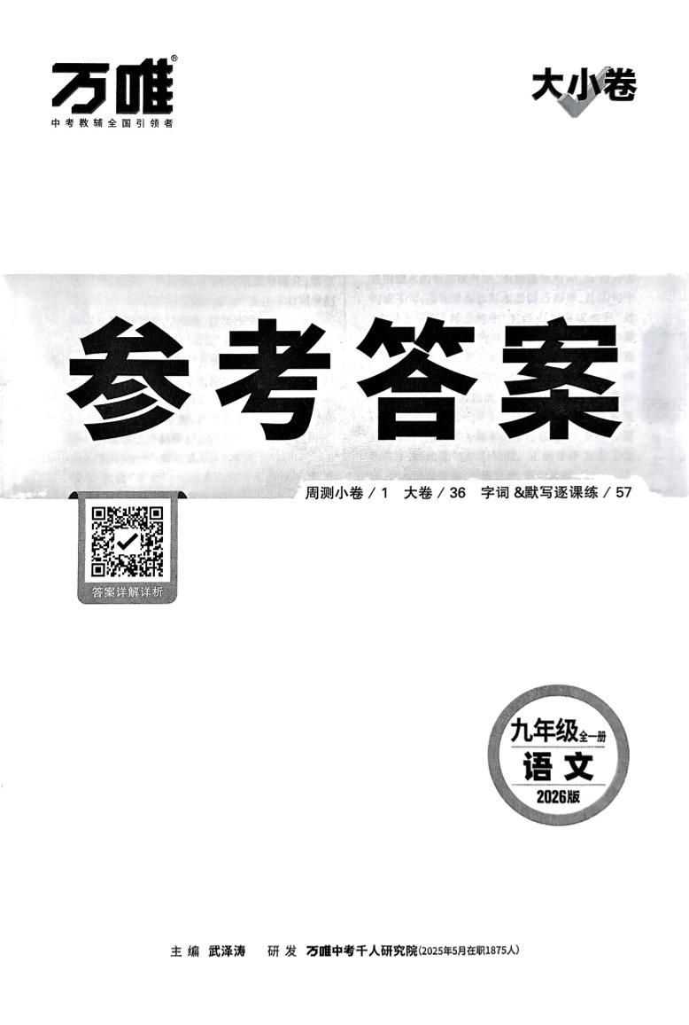 2026《万唯大小卷•语文》9全参考答案