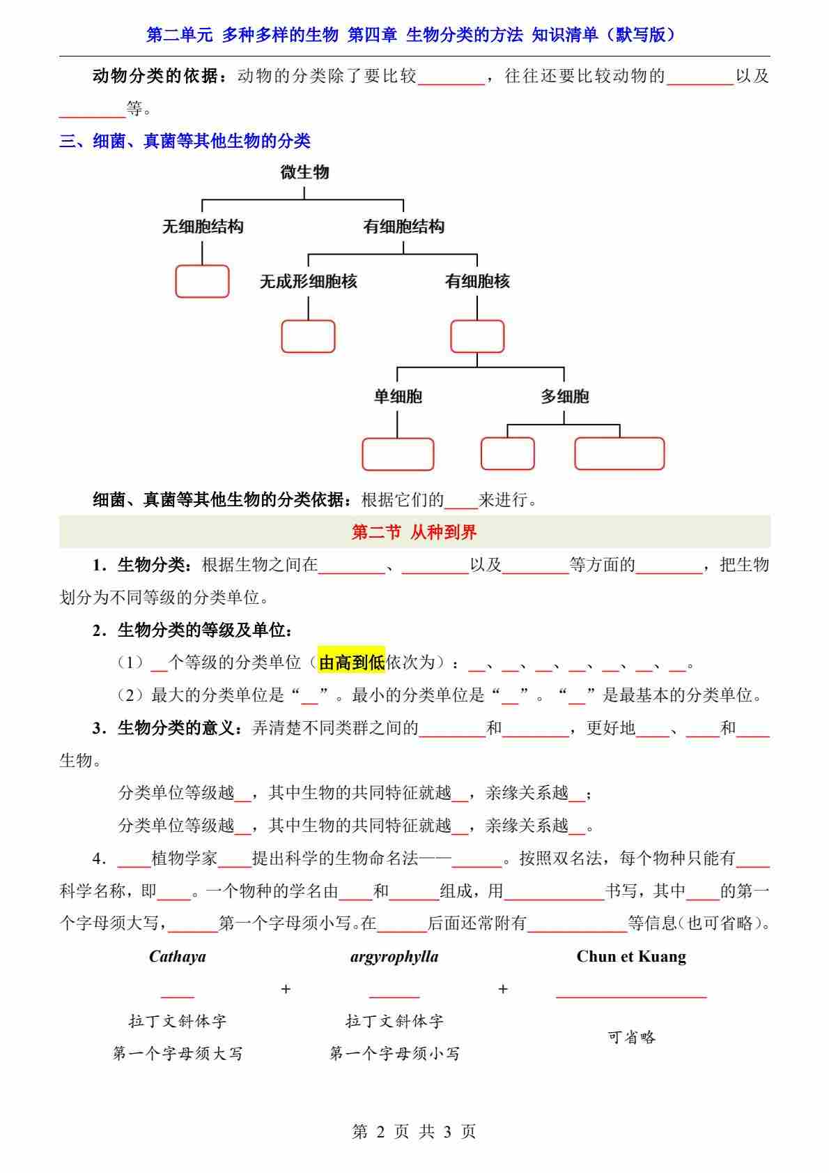首页 > 全部 > 知识梳理 > 第2单元 第4章 生物分类的方法(知识清单-默写版)