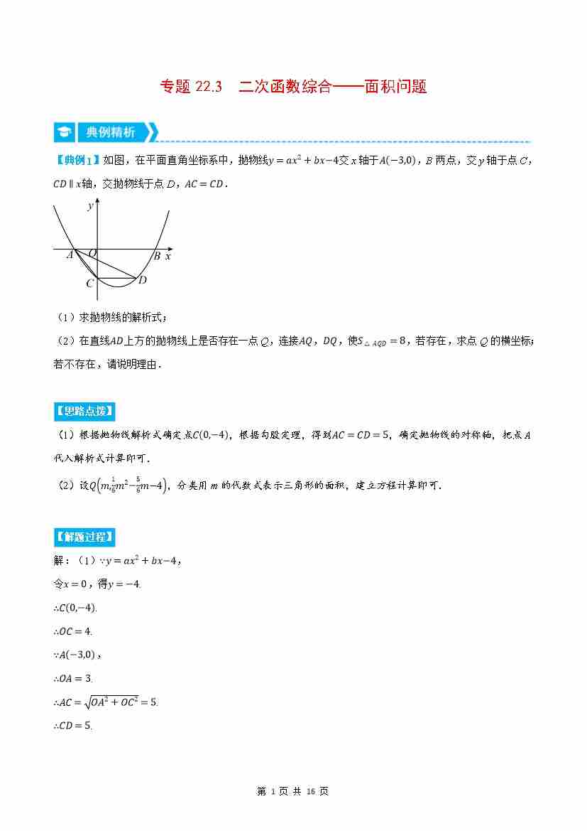 首页 > 全部 > 压轴题专项 > 专题22.3 二次函数综合——面积问题(压轴题专项讲练)(人教版)(原卷版)
