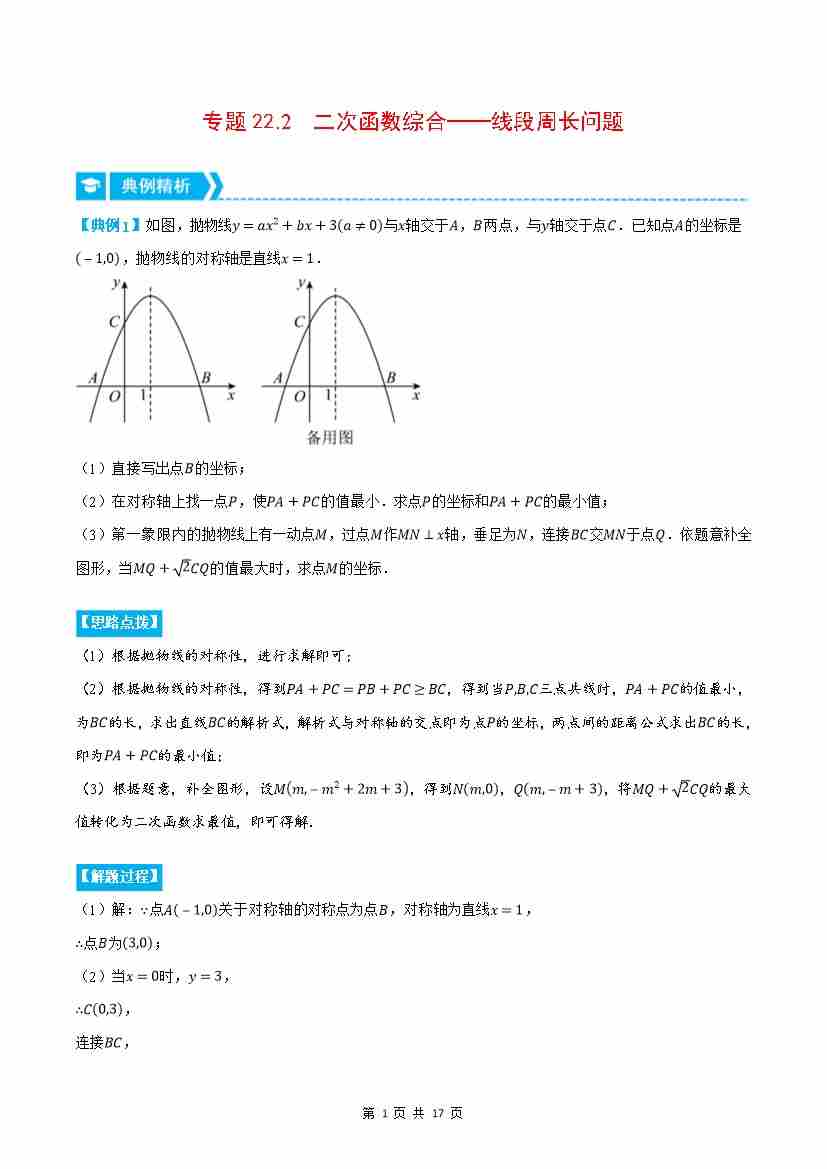 首页 > 全部 > 压轴题专项 > 专题22.2 二次函数综合——线段周长问题(压轴题专项讲练)(人教版)(原卷版)