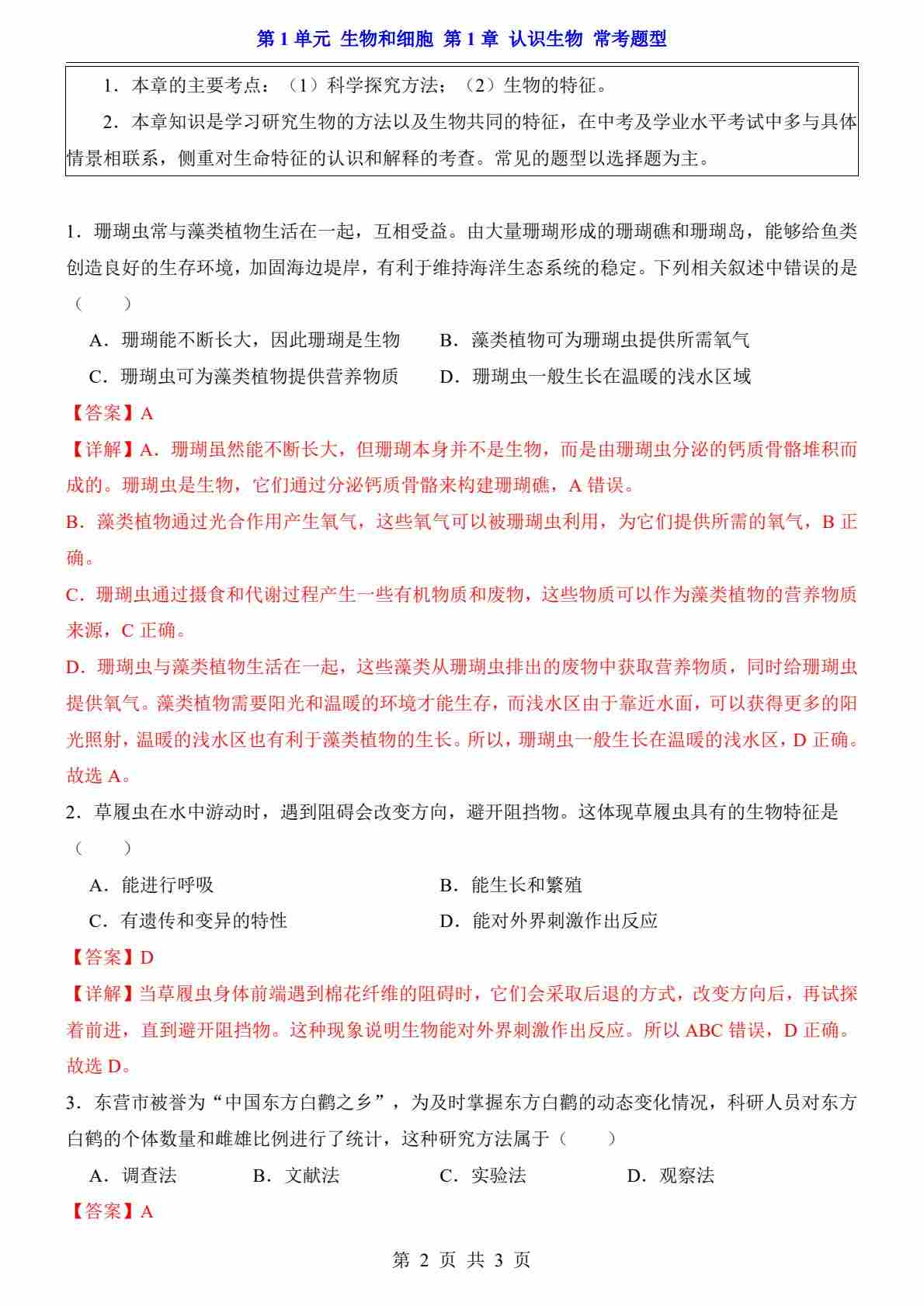 首页 > 全部 > 知识梳理 > 第1单元 第1章 认识生物 常考题型