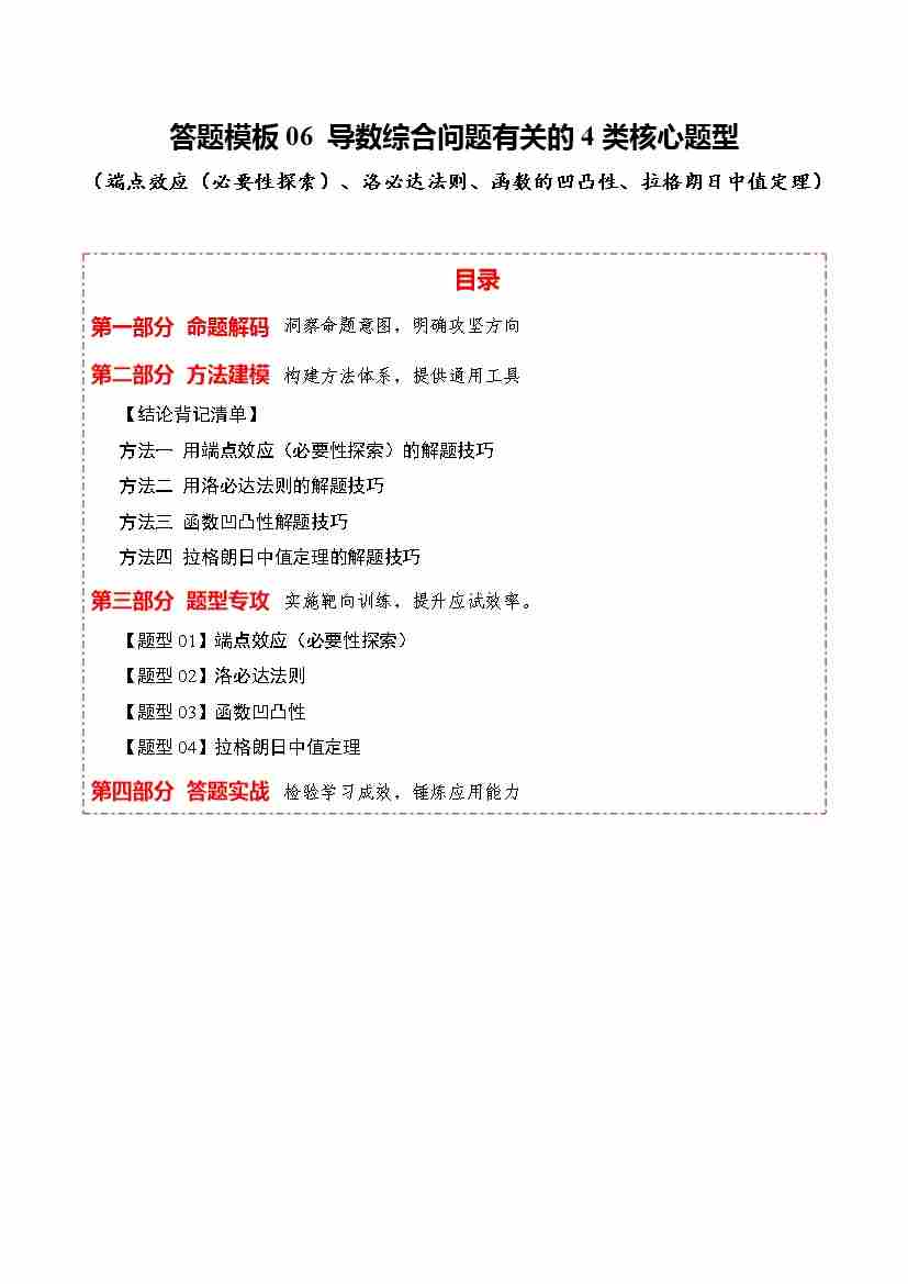答题模板06 导数综合问题有关的4类核心题型(端点效应(必要性探索)、洛必达法则、函数的凹凸性、拉格朗日中值定理)(方法、题型、实战)(学生版)