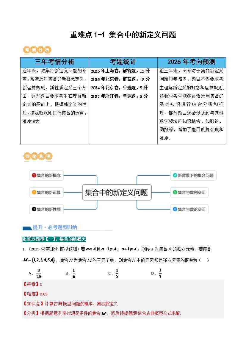 重难点1-1 集合中的新定义问题(6重难点题型、题型特训)(教师版)