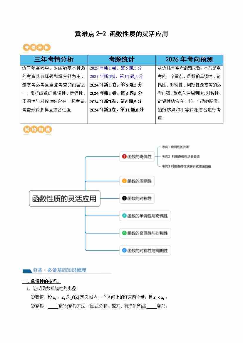 重难点2-2 函数性质的灵活运用(6重难点题型、10秒杀技巧与性质、题型特训)(学生版)