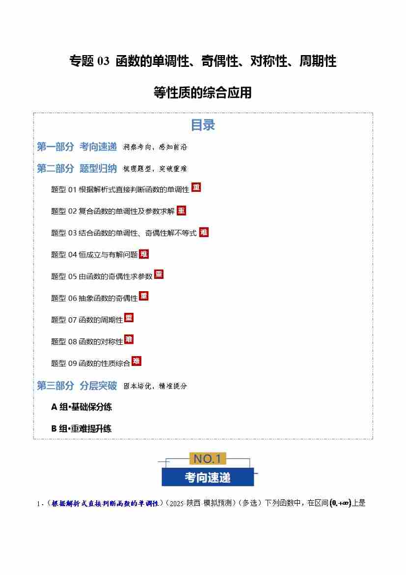 专题03 函数的单调性、奇偶性、对称性、周期性等性质的综合应用9大题型(专题专练)(全国通用)(学生版)