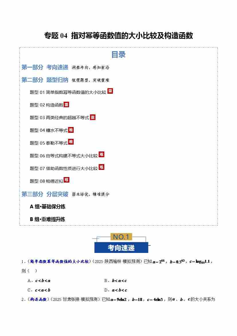 专题04 指对幂等函数值的大小比较及构造函数8大题型(专题专练)(全国通用)(教师版)