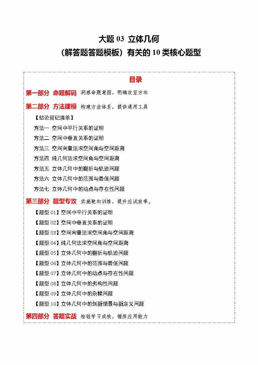 大题03 立体几何(解答题答题模板)有关的10类核心题型(方法、题型、实战)(学生版)