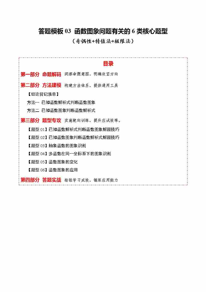 答题模板03 函数图象问题有关的6类核心题型(方法、题型、实战)(学生版)