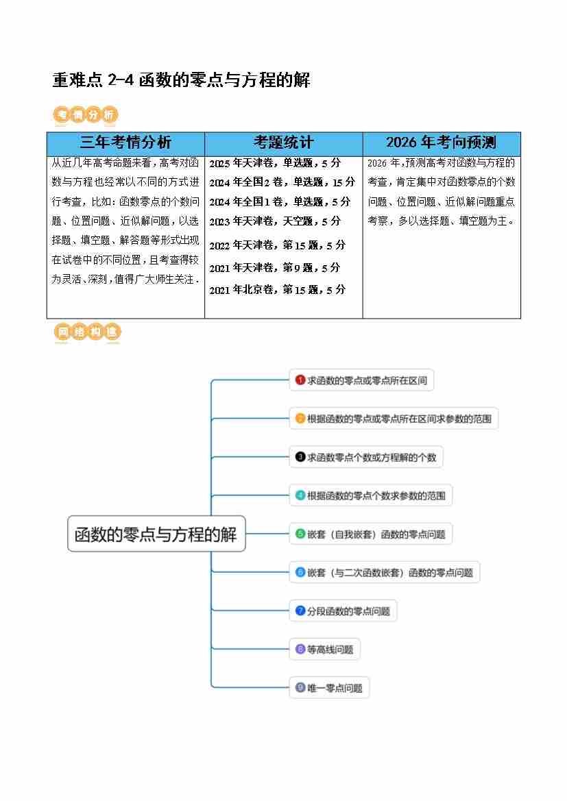 重难点2-4 函数的零点与方程的解(9重难点题型、题型特训)(学生版)