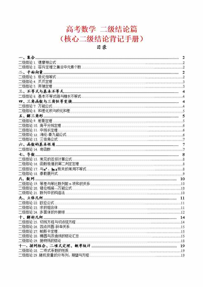 高考数学二级结论篇(核心知识背记手册)(默写版)