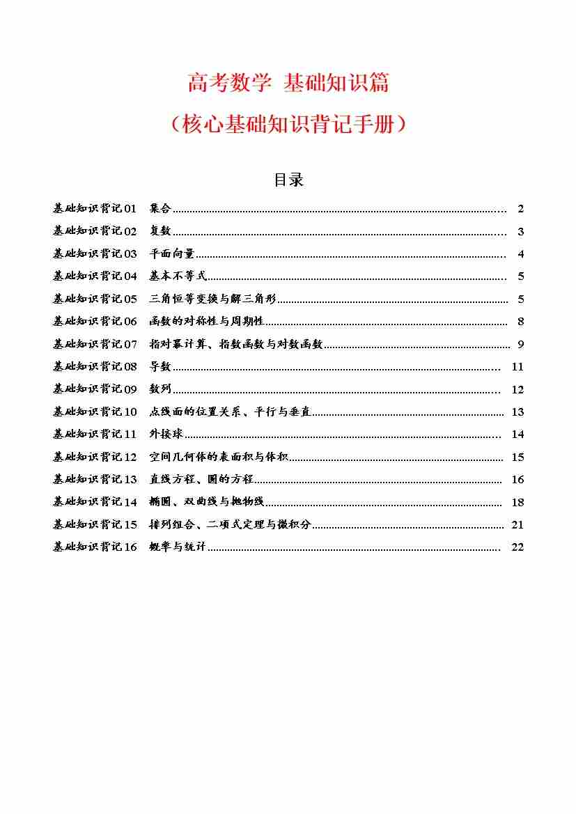 高考数学基础知识篇(核心知识背记手册)(学生版)