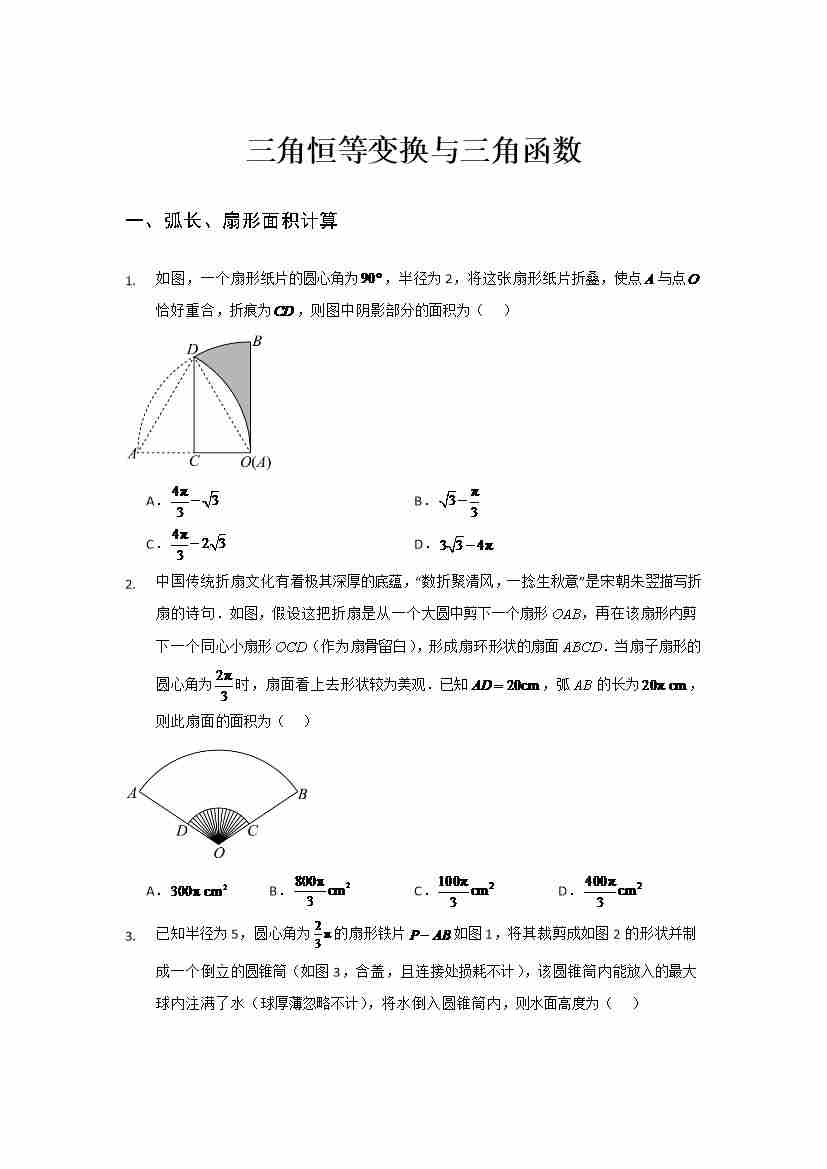 三角恒等变换与三角函数小题专练学生版