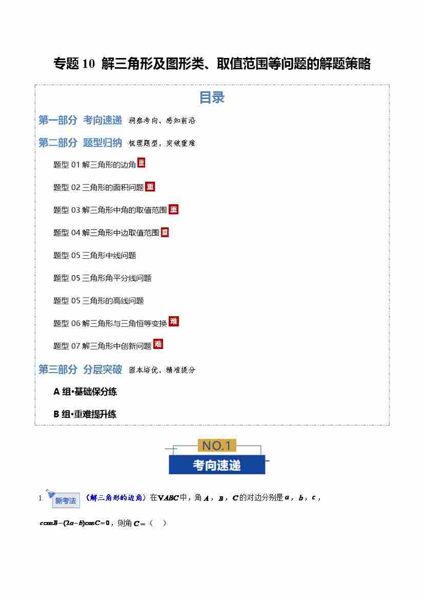专题10 解三角形及图形类、取值范围等问题的解题策略(专题专练)(全国通用)(学生版)