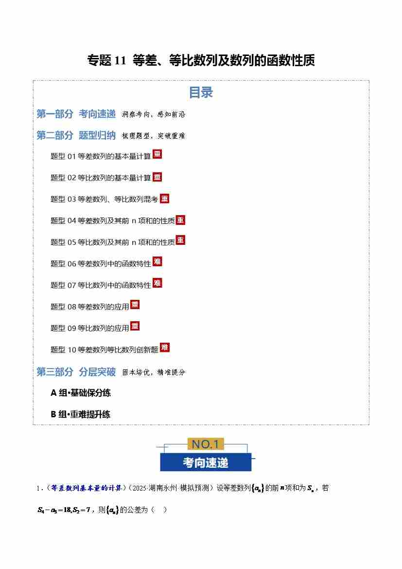 专题11 等差、等比数列及数列的函数性质10大题型(专题专练)(全国通用)(学生版)
