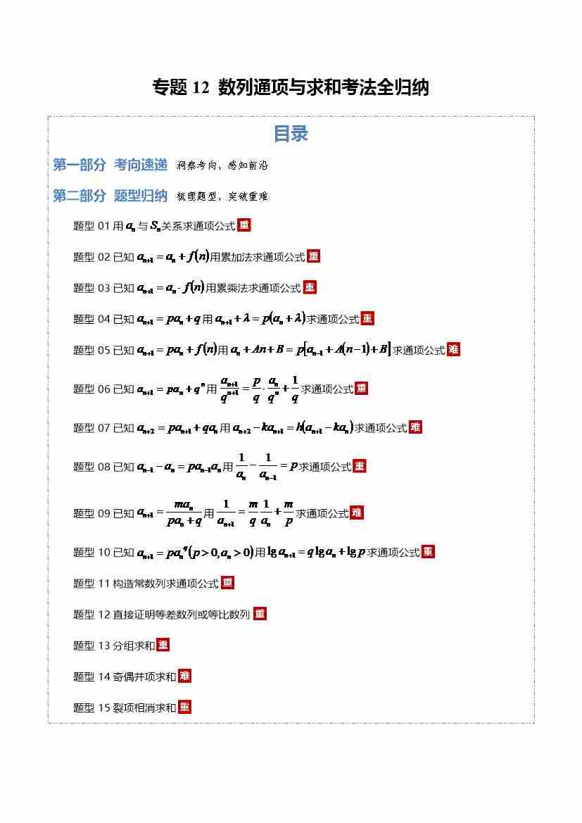 专题12 数列通项与求和考法全归纳17大题型(专题专练)(全国通用)(学生版)