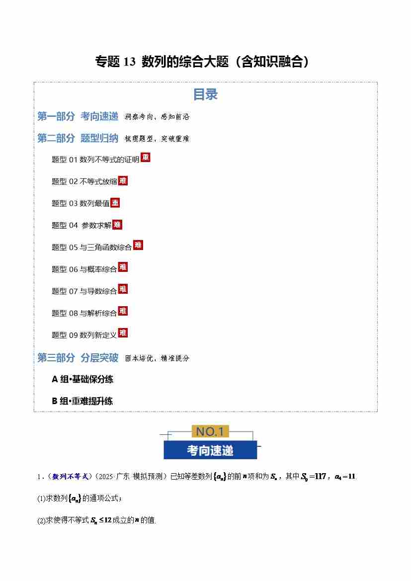 专题13 数列的综合大题(含知识融合)9大题型(专题专练)(全国通用)(学生版)