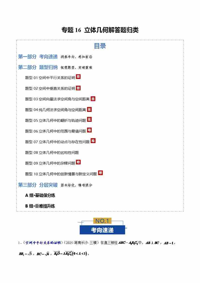 专题16 立体几何解答题归类10大题型(专题专练)(全国通用)(学生版)