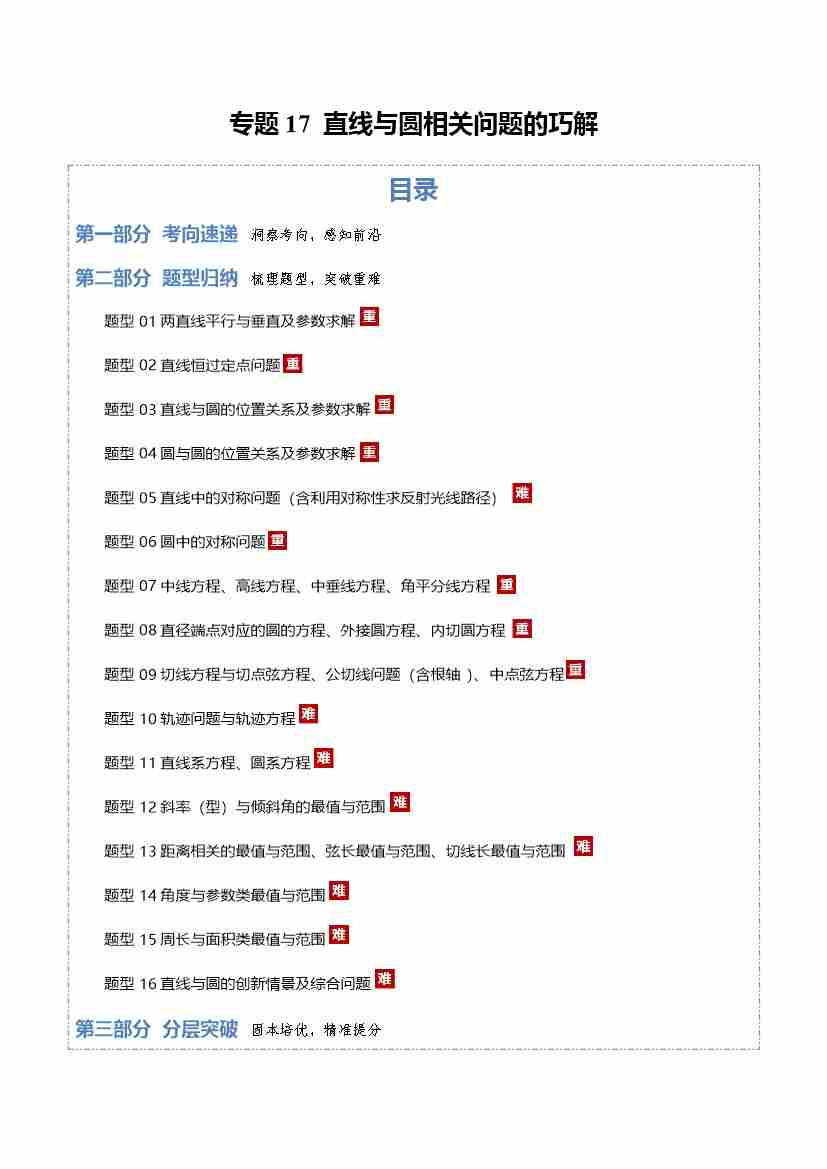 专题17 直线与圆相关问题的巧解16大题型(专题专练)(全国通用)(学生版)